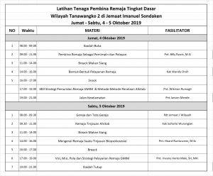 Dilaksanakan Jumat dan Sabtu, 5 dan 6 Oktober 2019, yang dibuka dalam Ibadah oleh Ketua KPRS GMIM, Pnt. dr Michaela Paruntu, MARS. Menurut kak Micha, semoga pelatihan ini bisa memberi nilai tambah bagi para pembina dalam pelayanan remaja GMIM.